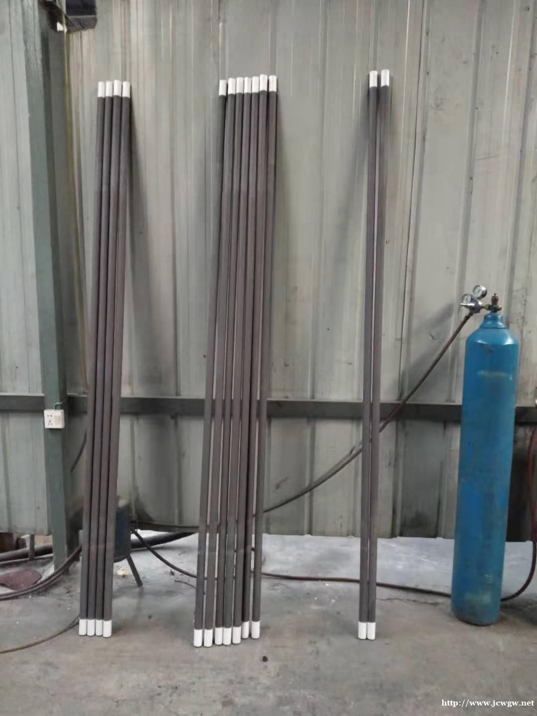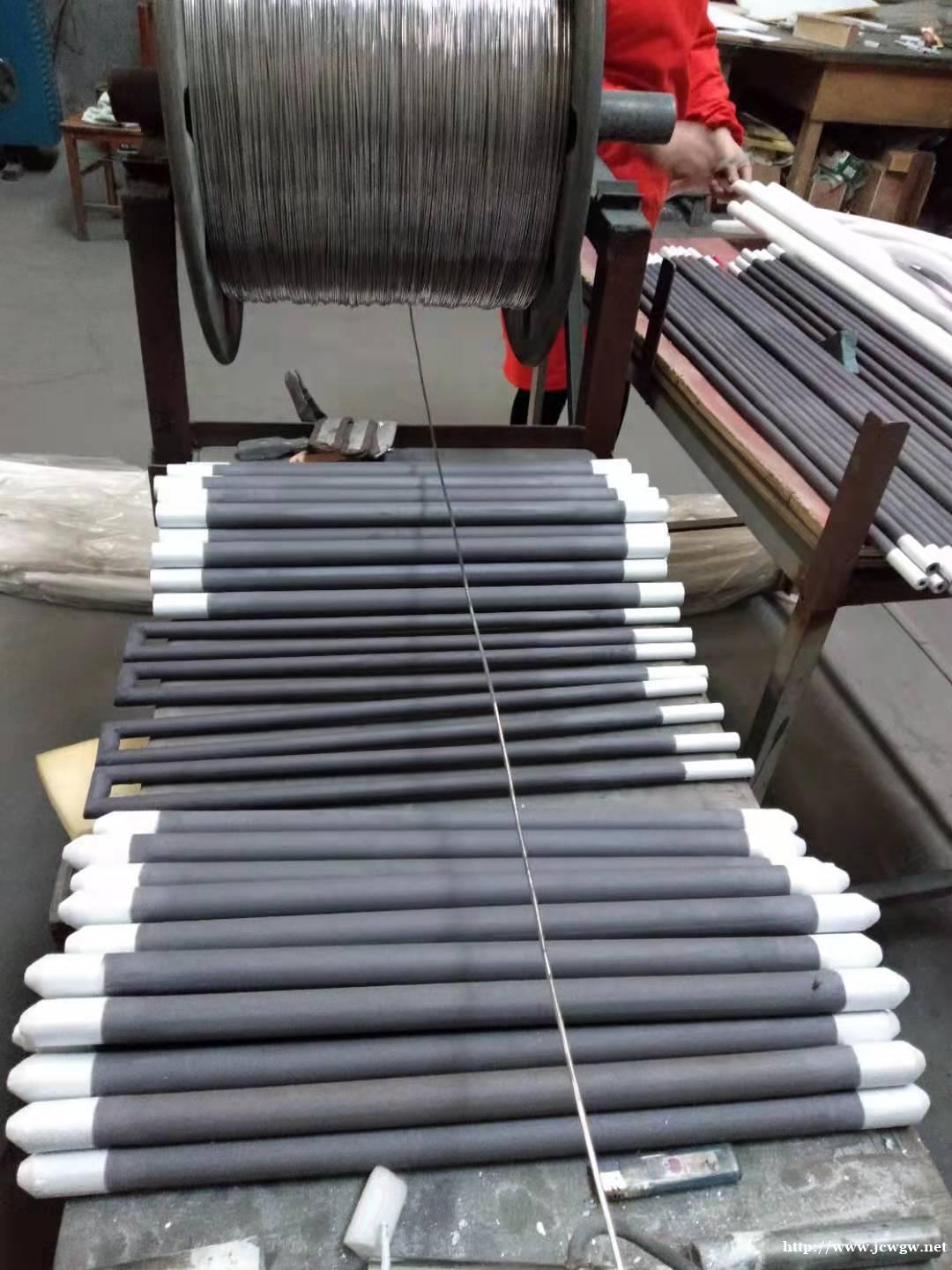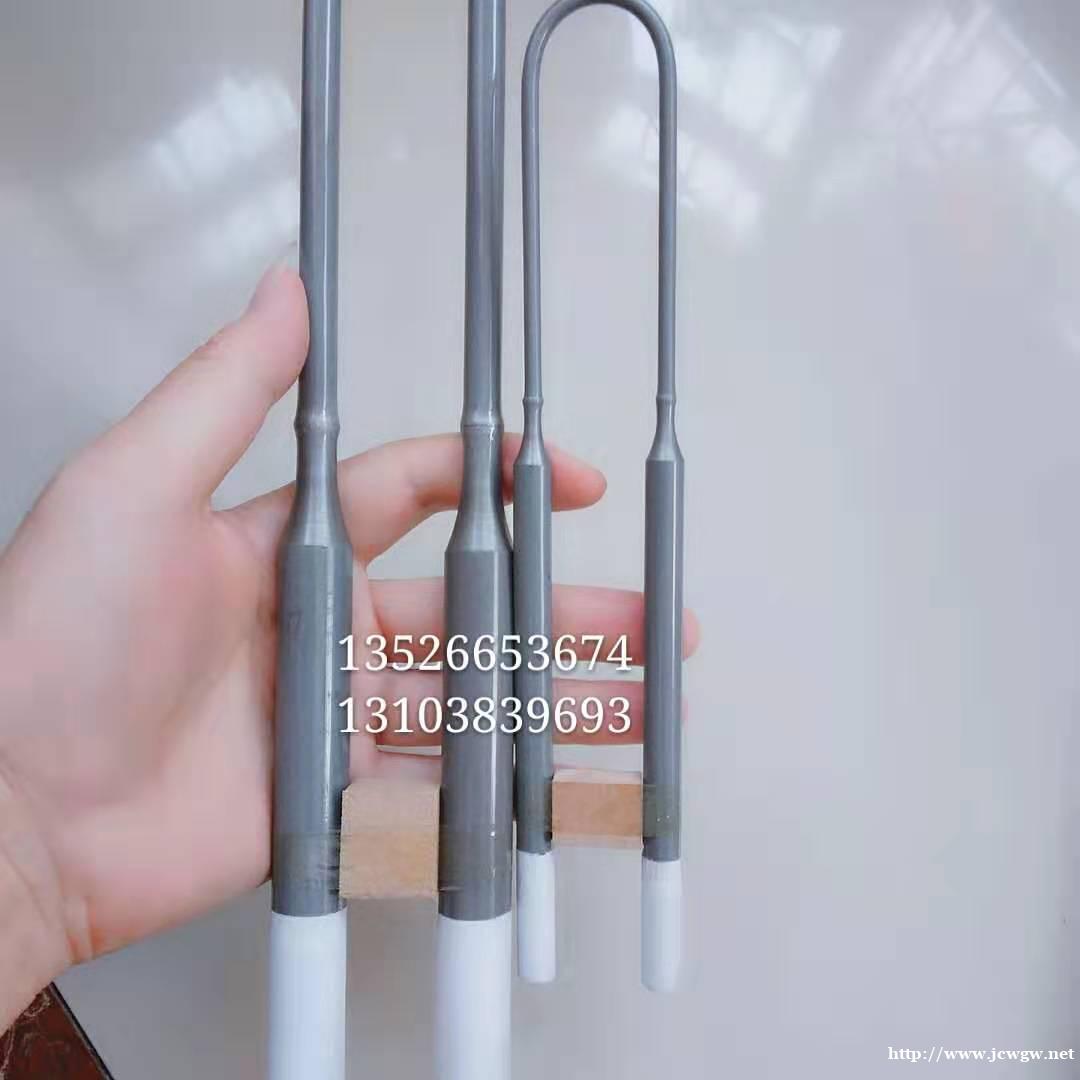 硅碳棒电热元件是选用优质绿色碳化硅为主要原料,经加工制坯、高温硅化、再结晶而成的棒管状非金属高温电热元件。该元件与金属电热元件相比,具有使用温度高(可达1500℃)、抗氧化、耐腐蚀、寿命长、变形微、安装维修方便等特点。硅碳棒产品有粗端部、等直径硅碳棒,类型有直型棒、U型棒、三相棒、枪型棒、五节型棒、槽型棒、单螺纹棒、双螺纹棒等各种规格型号,硅碳棒的直径范围为Φ8-Φ54mm。 硅钼棒、硅碳棒产品可在空气、氮气、氢气、氨分解气、惰性气体、真空等气氛下,用作陶瓷、磁性材料、玻璃、冶金、粉体材料、稀土化工、电子元器件、金属处理、耐火材料、研究院校等行业的高温电加热元件,产品大量地销往全国各地,深受广大用户信赖。 真诚欢迎您到嵩山少林来光临指导工作!
